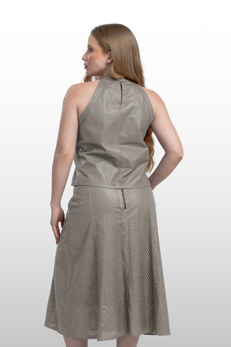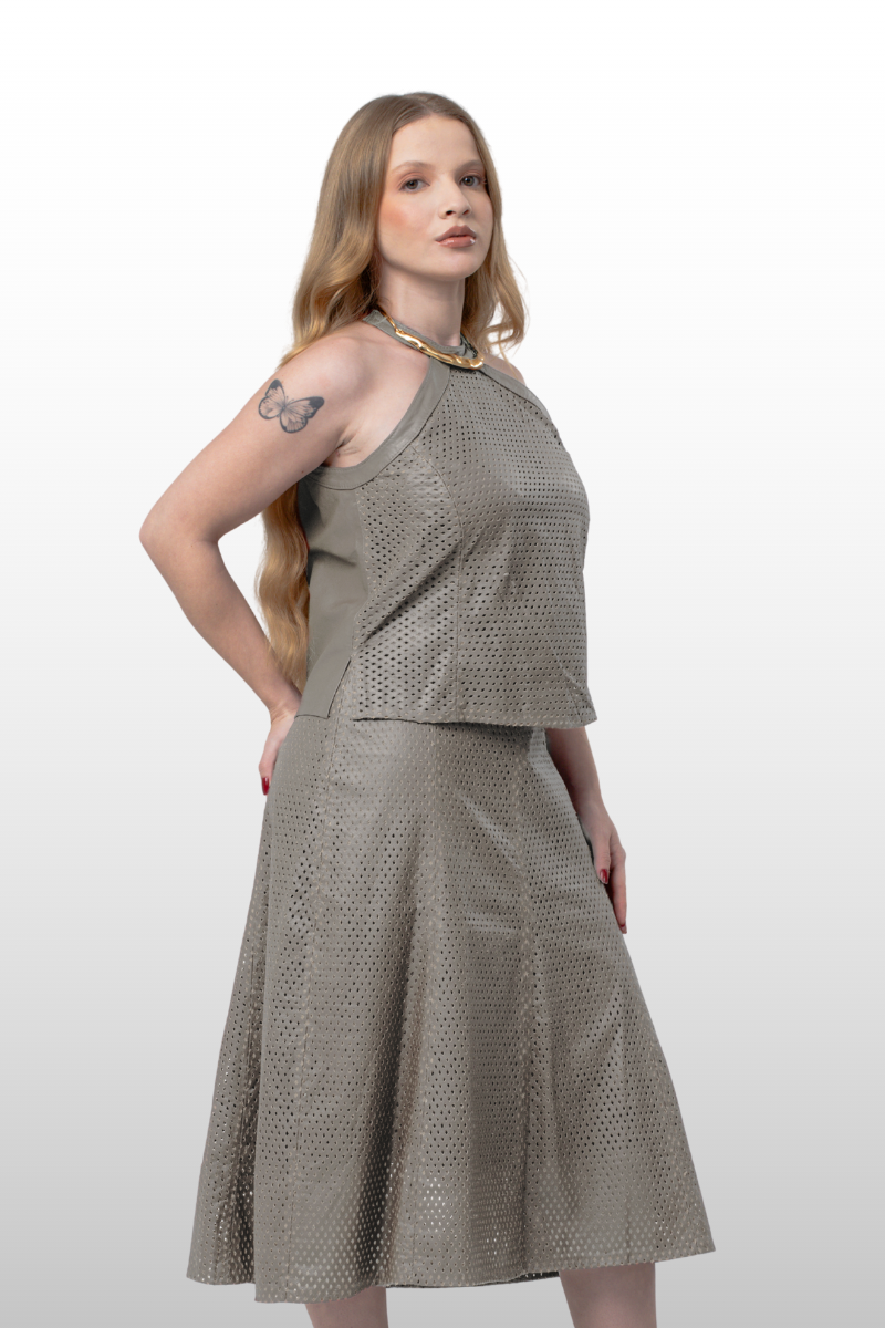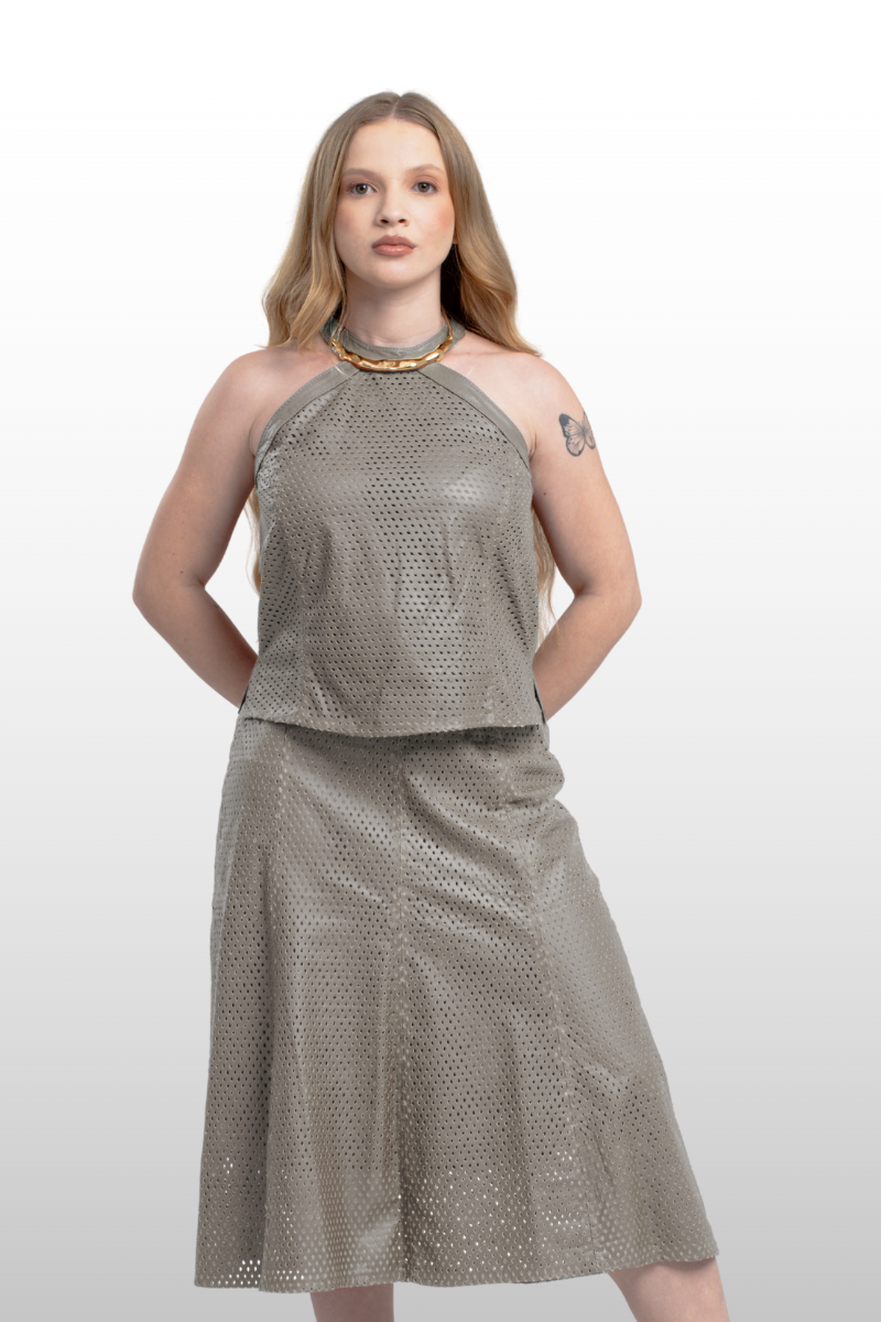 • Saia couro legítimo perfurado.